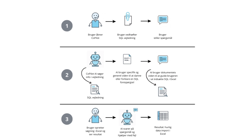 Det kræver kun, at vi stiller vores viden til rådighed i en form, som AI’en kan forstå og bruge. Det begrænser sig ikke kun til CoPilot SQL forespørgsler, men kan også anvendes på mange andre typer af arbejdsgange eller guidelines, der skal indgå i indhold vi producerer jævnligt.
